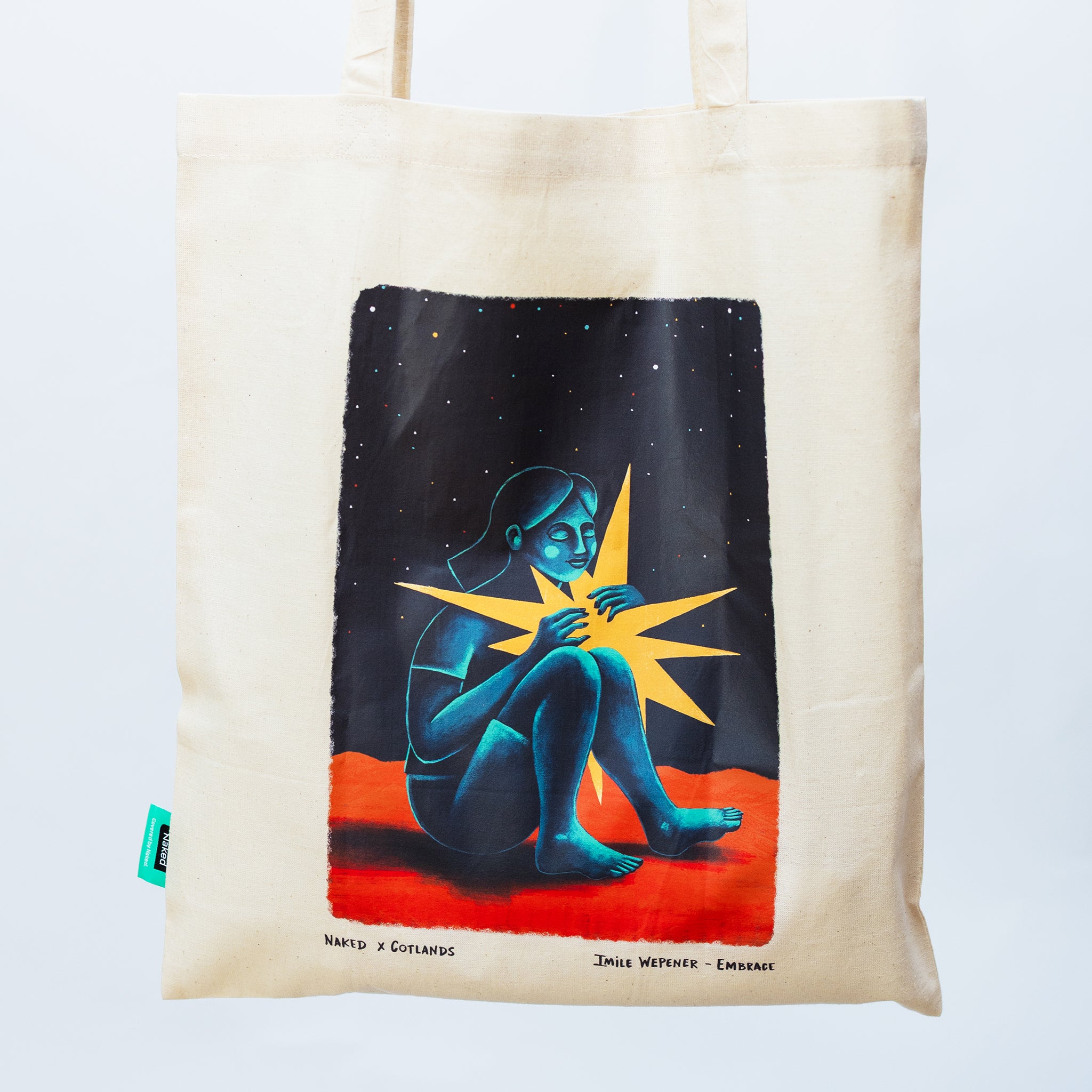 Imile Wepener’s heartfelt artwork shows a young girl holding a star, symbolising hope and possibility for children. In collaboration with the Naked Difference, this piece was created for Cotlands, who provide quality early childhood development programmes.