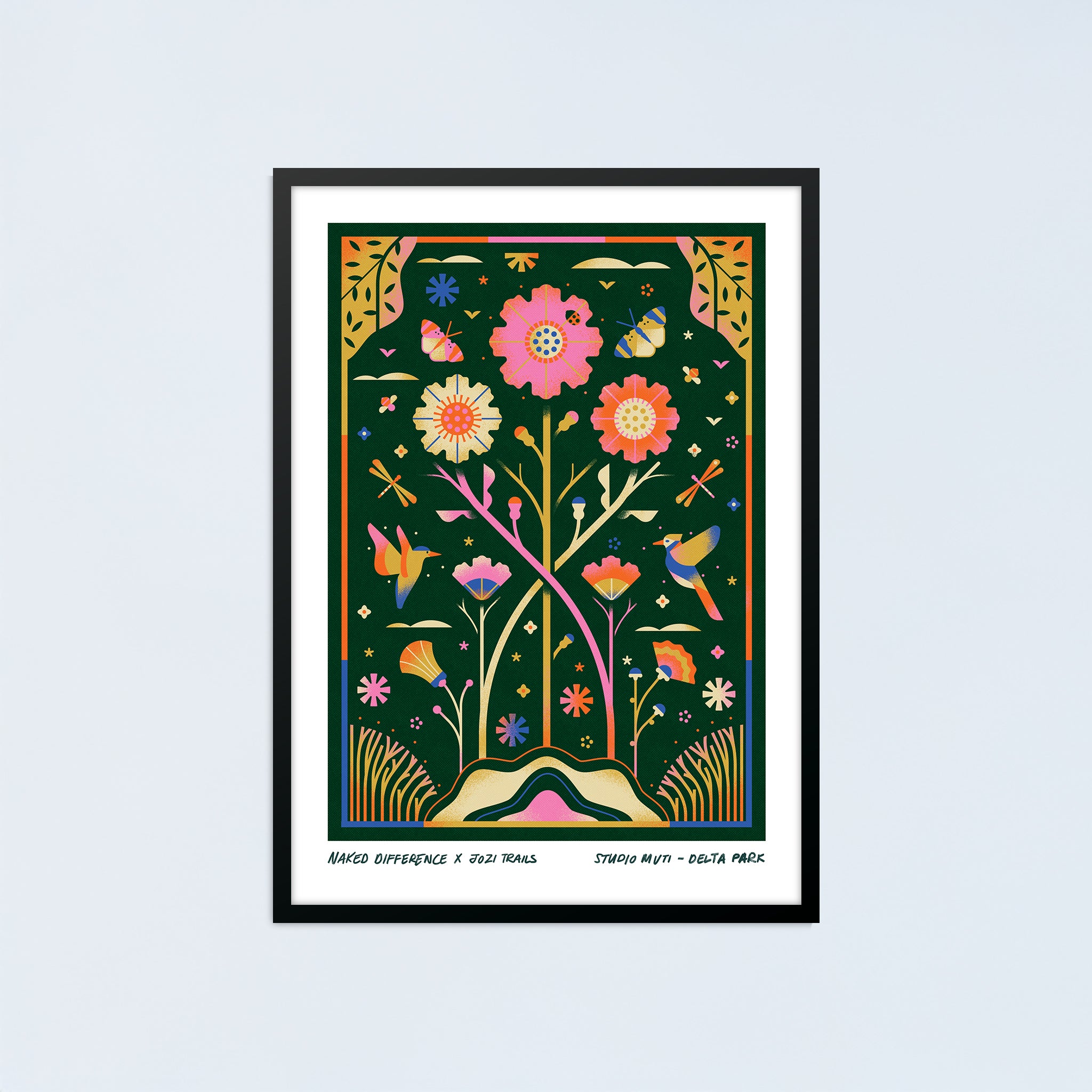 This Studio Muti x Naked Difference collaboration channels a bright vision for Jozi Trails through an energising artwork that celebrates conservation, community spaces and the cosmos flower.