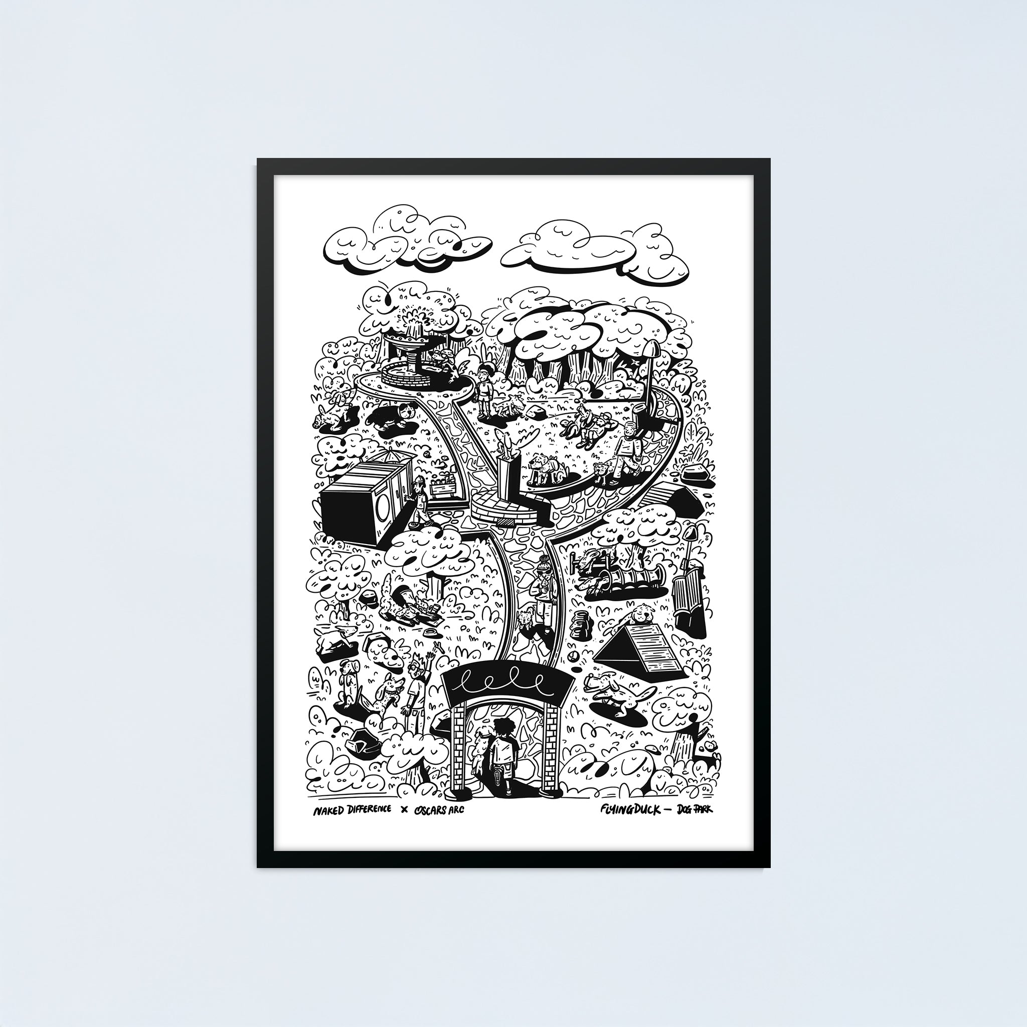 Add a touch of playfulness to your walls. Created with the Naked Difference, Ziyaad Samsodien’s work celebrates adoption and the joy of community through Oscars Arc.